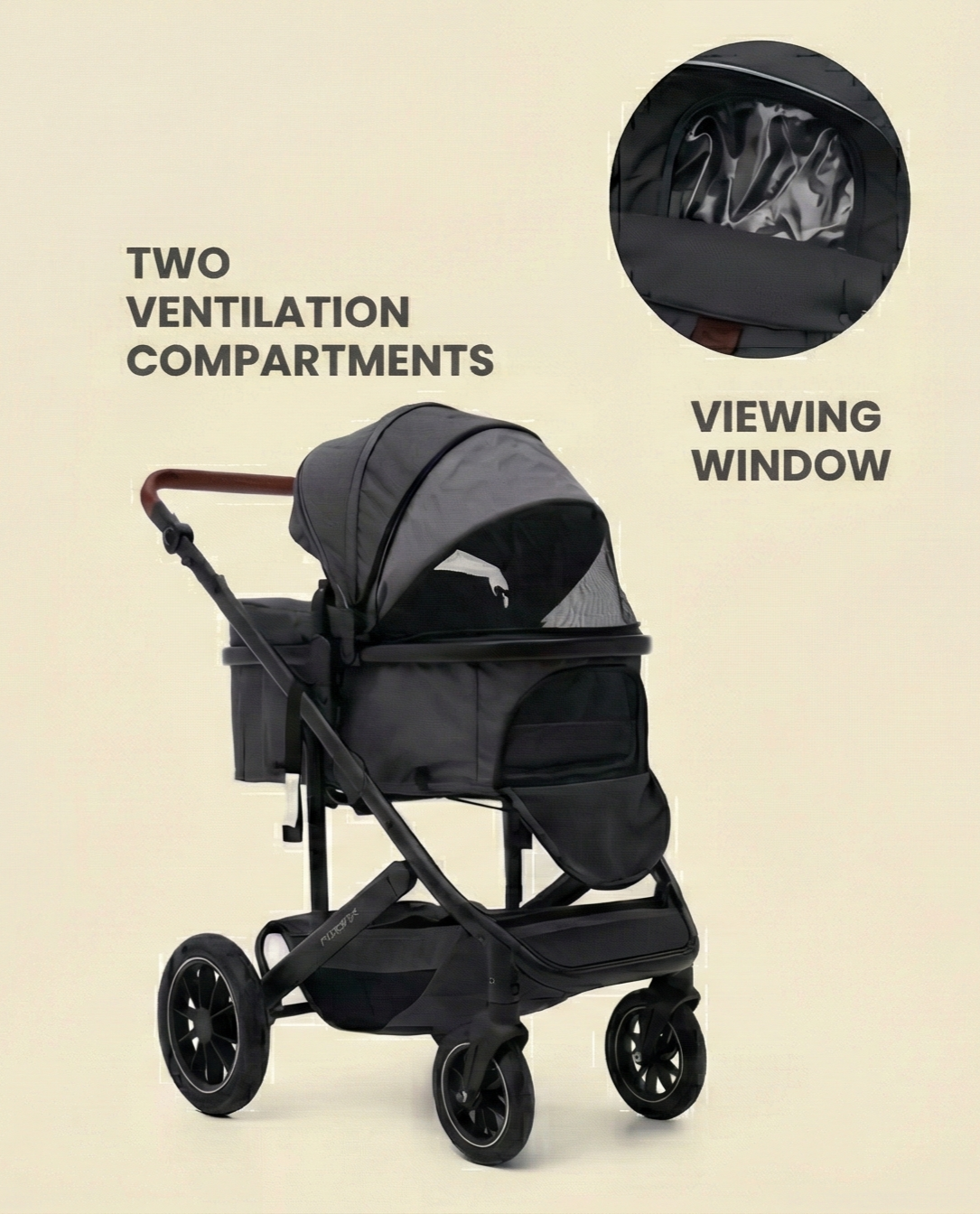 Keep your baby cool even on the hottest days. The canopy features two dedicated ventilation compartments with breathable mesh, ensuring constant fresh air circulation while the viewing window lets you check in without stopping.