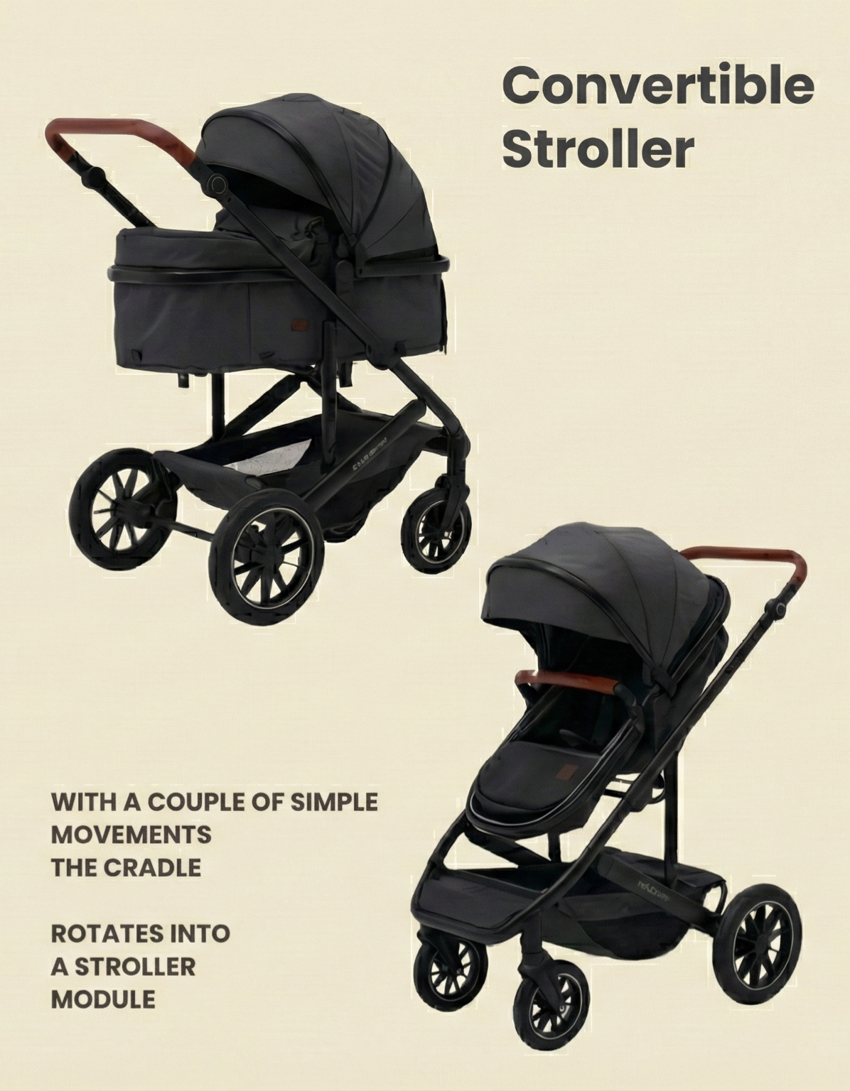 This isn't just a pram; it's a long-term investment. With a couple of simple movements, the cozy newborn cradle rotates and transforms into a standard stroller module, allowing the system to grow alongside your child.